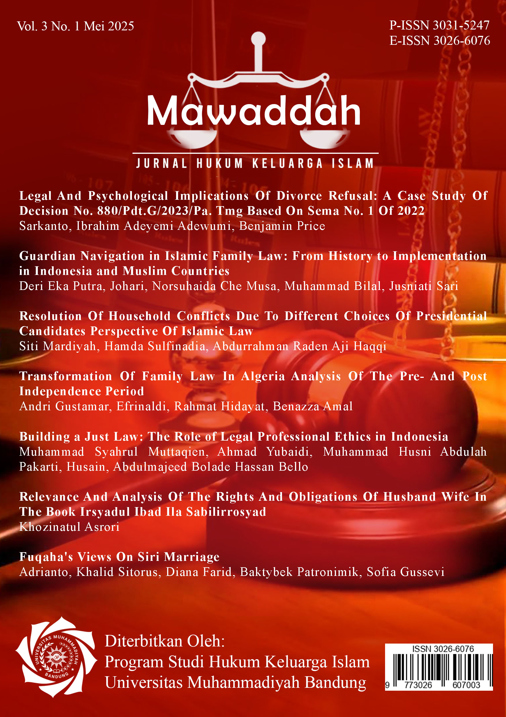Kusmardani, Alex, Ahmad Fathonih, Usep Saepullah, and Nurrohman. “Nushūz In Islamic Family Law: A Critical Study of Hadith Exegesis and Religious Court Verdicts.” Mawaddah: Jurnal Hukum Keluarga Islam 2, no. 1 (May 1, 2024): 1–31. https://doi.org/10.52496/mjhki.v1i2.6.